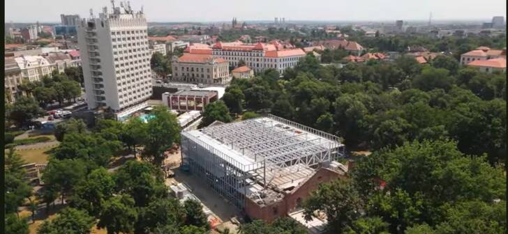 S-a instalat scheletul metalic care va fi acoperit cu panouri de sticlă, asigurând o nouă față sălii de spectacole a Teatrului Național Timișoara.
