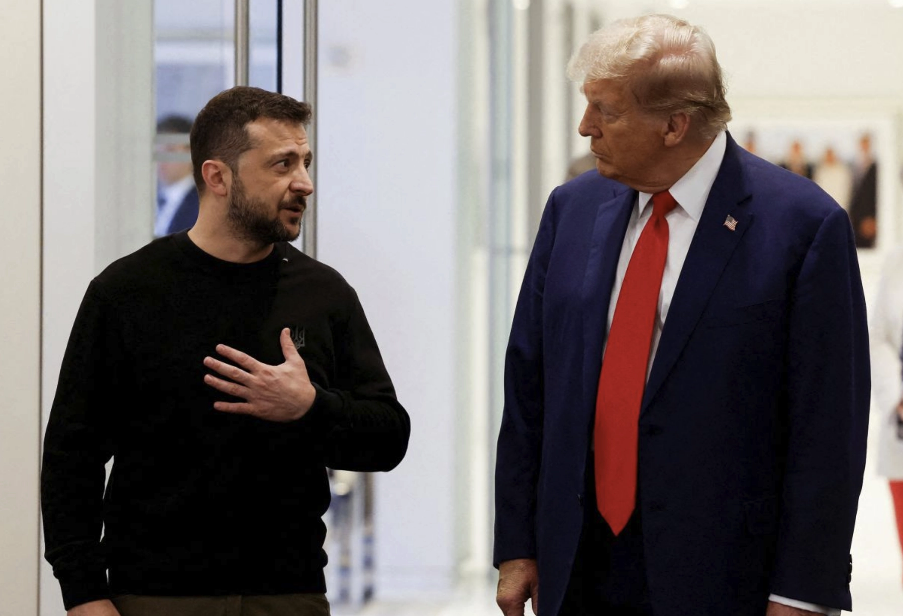 În încercarea de a-și îmbunătăți relația cu Trump, după acuzațiile anterioare de ingratitudine, Zelenski a observat că unii lideri europeni „cred că problemele se vor rezolva de la sine”, în timp ce alții au început să acționeze în mod proactiv, dar doar sub influența Statelor Unite.