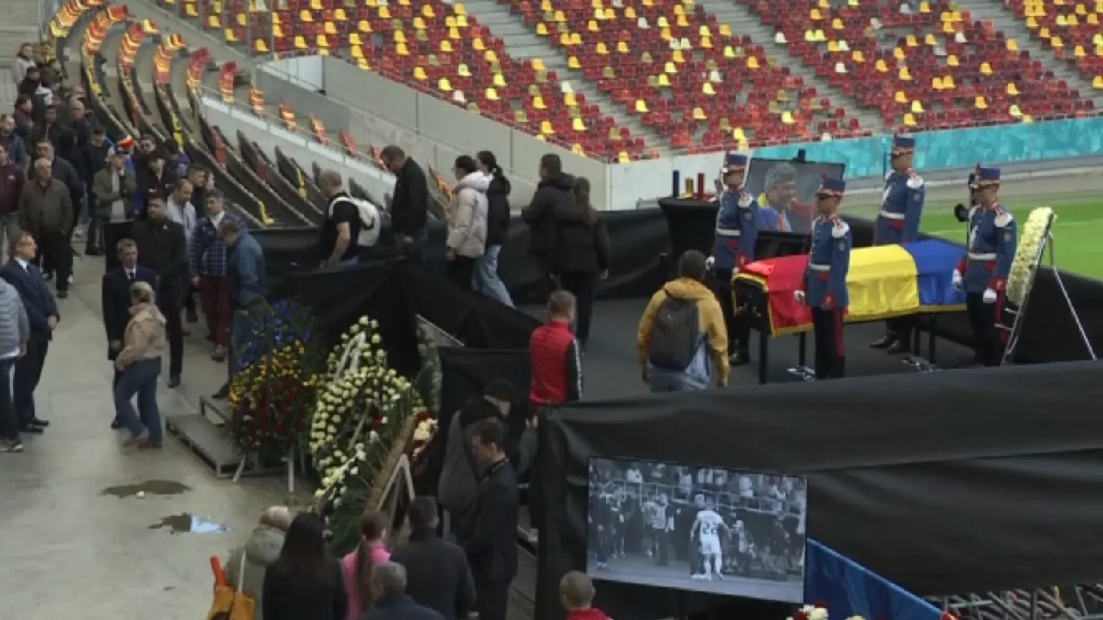 Tot joi, primarul general Ciprian Ciucu a fost prezent la catafalc cu o minge creată din flori, prinsă de o bucată ce imită suprafaţa de joc. În loc de coroană.