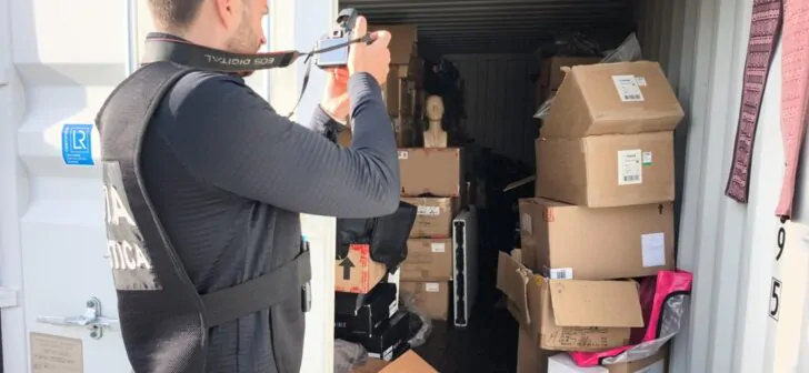 Polițiștii fac verificări și într-o serie de containere în care au găsit mărfuri contrafăcute.